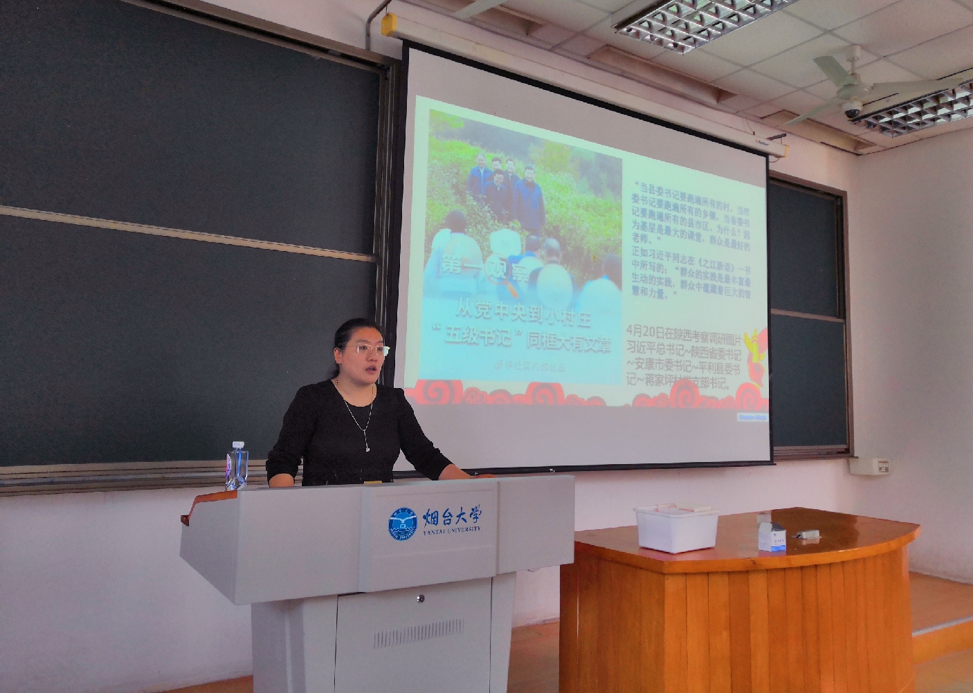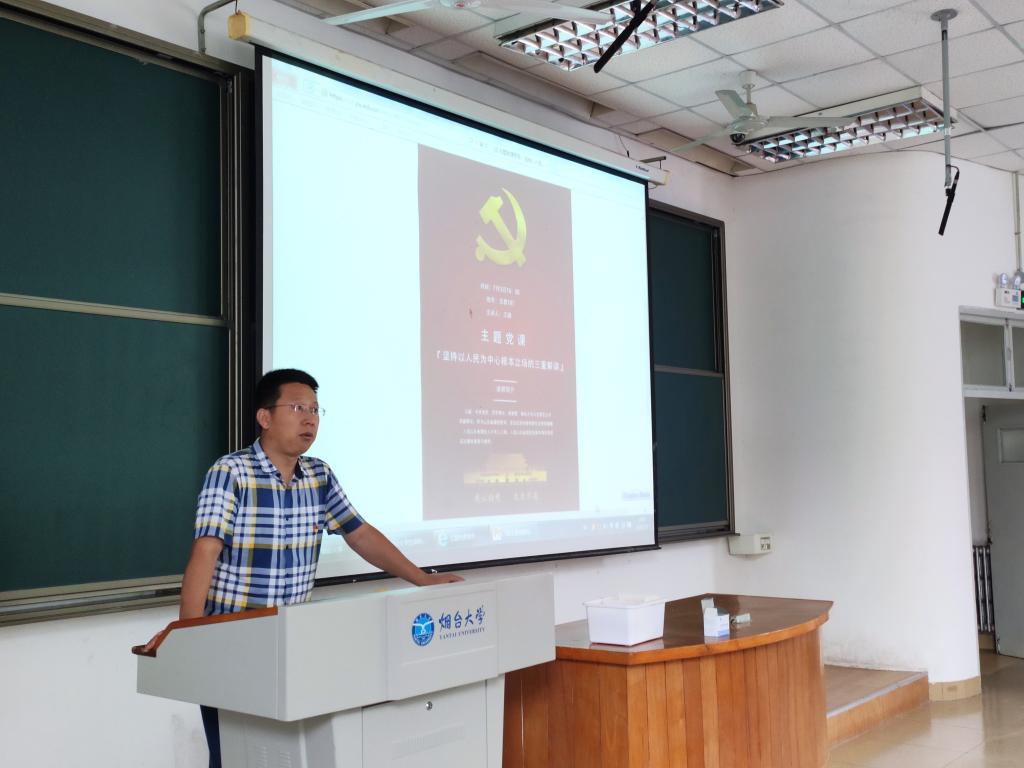 马克思主义学院副院长、“山东省高校优秀中青年思想政治理论课骨干教师”王毅为全体党员师生授课。