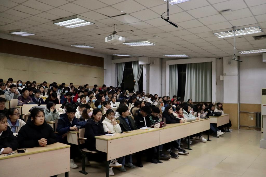 院长邬旭然在第七教学楼402为大一、大二学生骨干讲授思想政治课,主题为“永怀初心,砥砺奋进——记‘两弹一星’元勋郭永怀和他的夫人李佩”。