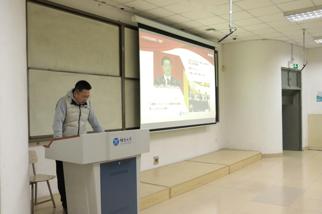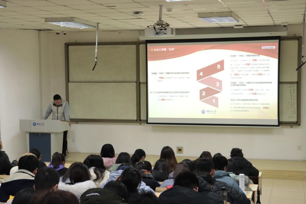 党总支书记张仁旭为学生开讲第一课,主题为党的十九届五中全会辅导报告。