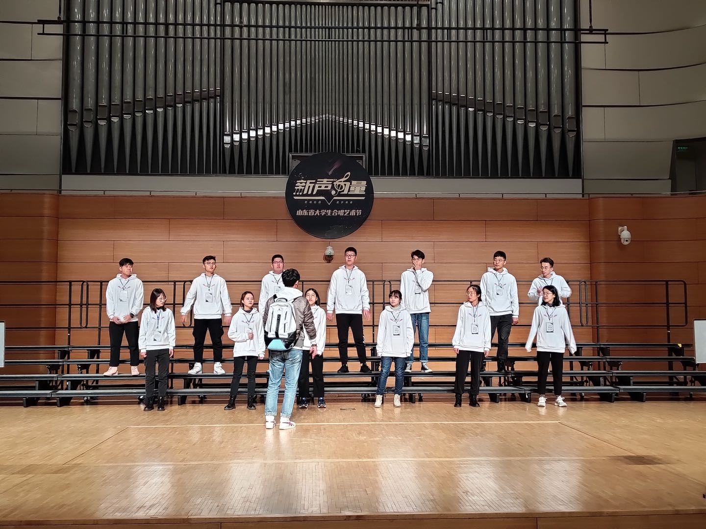热爱音乐、喜欢合唱的同学们自发组成的兴趣团体,由苏跃华担任指导教师,邀请刘善平老师担任专业顾问。此次参赛团队由13名2017级合唱队员组成,1名19级新生担任钢琴伴奏,在拿到进入决赛资格之后,团队成员在一个多月的时间里全力以赴地利用中午、晚上的时间进行练习,学院也为合唱团提供了有力保障及支持,激励广大青年弘扬新时代主旋律,争做社会主义建设者和接班人。