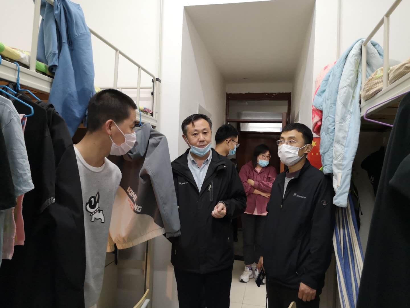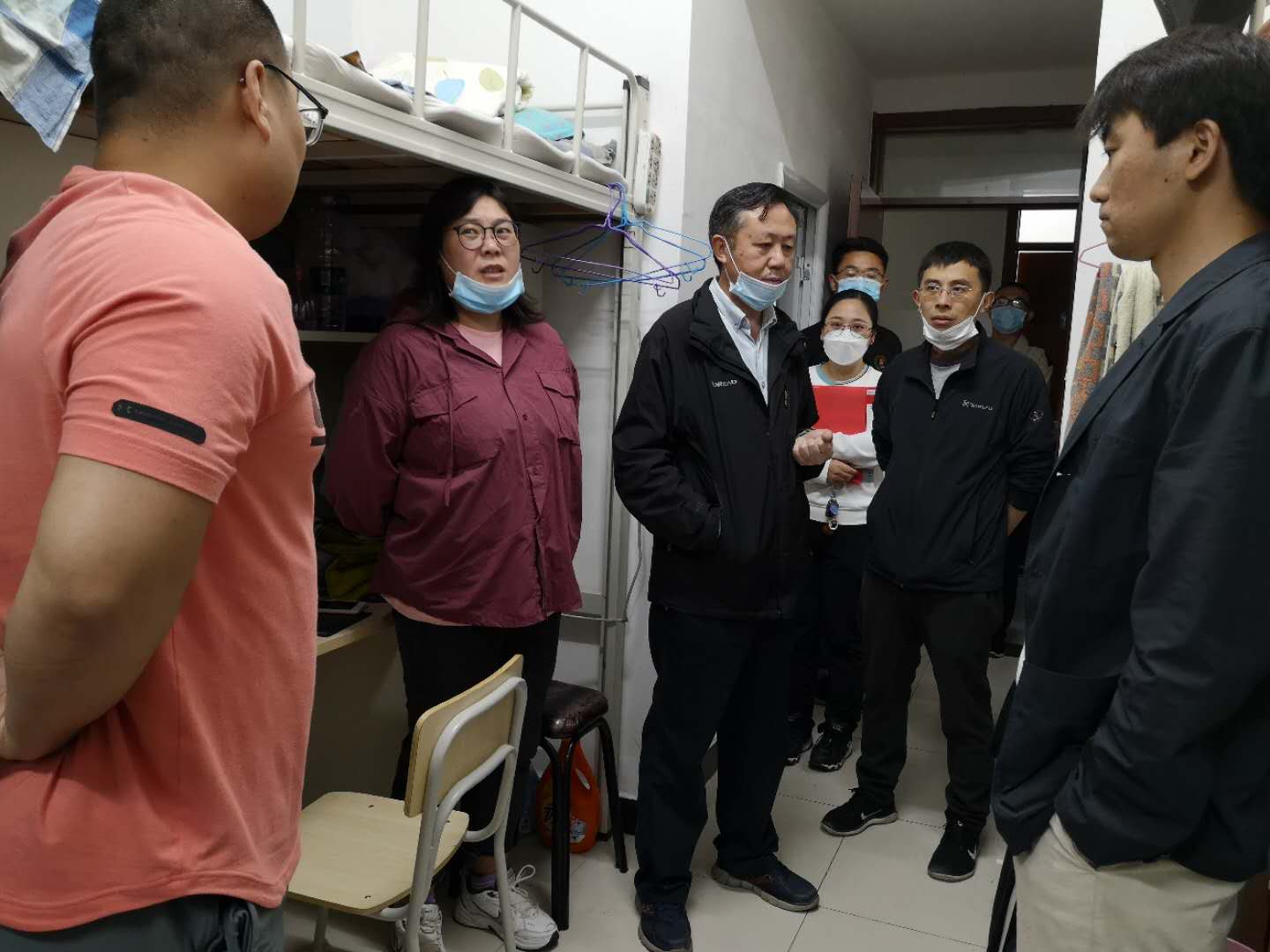 在公寓门口,老师们向坚守在岗位的值班人员表示感谢,正因为他们的默默付出,学生们的返校工作才会有条不紊地进行。 在宿舍中,来自武汉的研二学生田潇然表达了对学校贴心安排的感谢,邬旭然强调,在这场没有硝烟的战争中,我们在党中央的正确指引下,才得到我们在校园里安心学习的机会,在近期召开的两会上,也能看到国家对战胜疫情的信心,我们现在要尽快收心,投入科研学习中来;研一学生赵静从火车站到宿舍,在老师们一条龙服务中安全返回学校,李明月为同学们讲述了接站背后的故事,是学校细致周到的安排、是老师们不辞辛苦的工作,才使得开学进展如此顺利;曹鹏询问了研三同学的就业情况、解答了同学就业困惑,他表示毕业生要对自己的未来做好规划,深造、就业都是不错的选择;