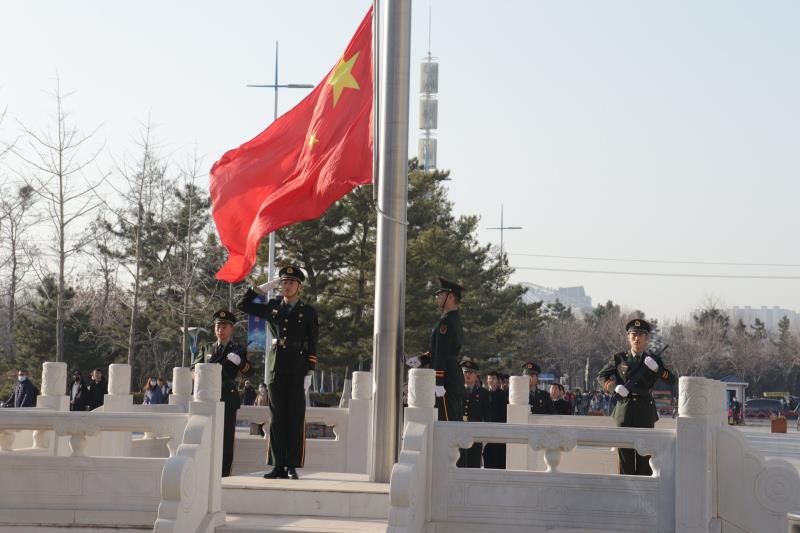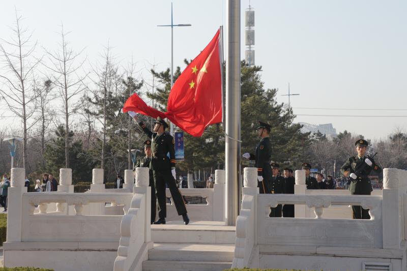 在国旗广场举行“一秩芳华·生生不息”十周年院庆升旗仪式。校长郭善利、副校长王强,学院现任历任院领导、辅导员及全院师生参加仪式。