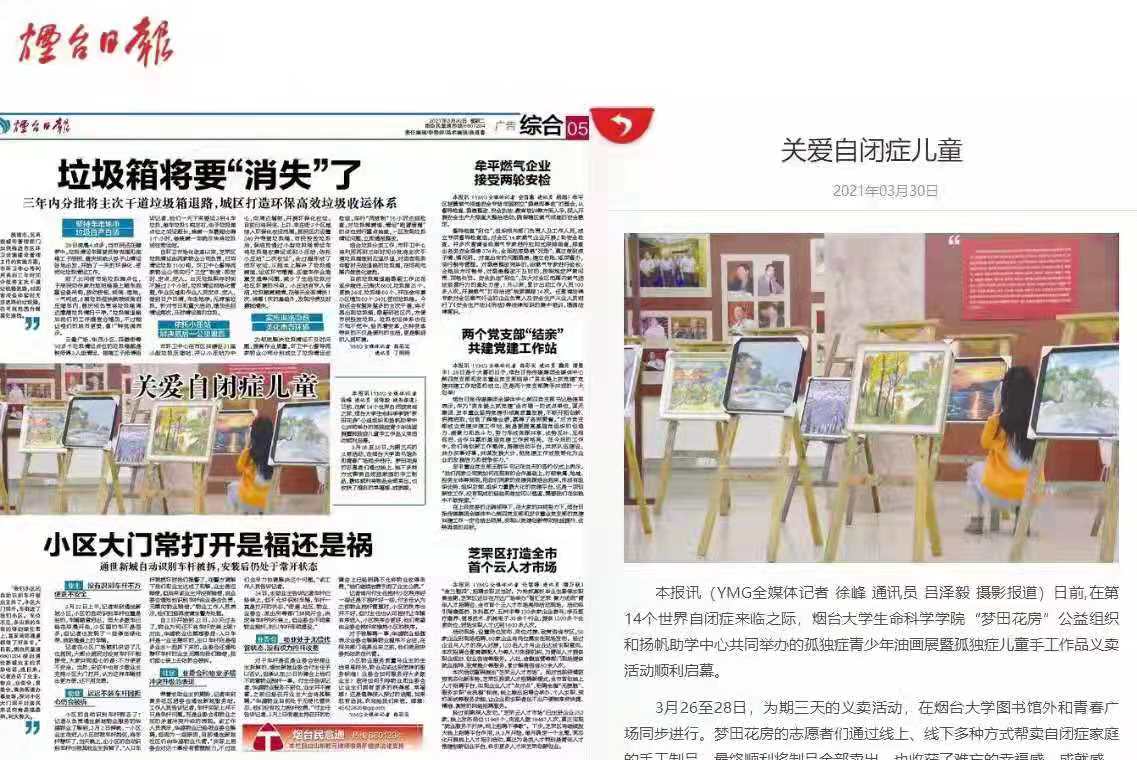 2016年创立的志愿服务品牌,六年来团队凝心聚力,茁壮成长,曾获第三届中国青年志愿服务项目大赛铜奖、山东省志愿服务项目大赛银奖、山东省“爱心传递”主题育人活动优秀工作案例。经过多年深耕,现已从志愿服务品牌进一步建设成为学院育人的重要载体,形成以“关爱儿童心灵成长”为主线,以“生命之光、个性之光、美育之光”为支线的完整成长辅助体系,在为少年儿童提供服务和引导的同时,团队成员也在课程建设、儿童认知启发、综合素质教育的过程中,充分施展智慧才能,获得“教学相长”的成就感。2021年与烟台市扬帆公益发展中心联合主办自闭症青少年油画展暨关爱自闭症家庭义卖活动,事迹刊文于《烟台日报》。成员张梦迪的战疫服务事迹登上人民日报客户端,彰显新时代大学生志愿者的青春担当。