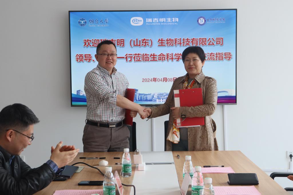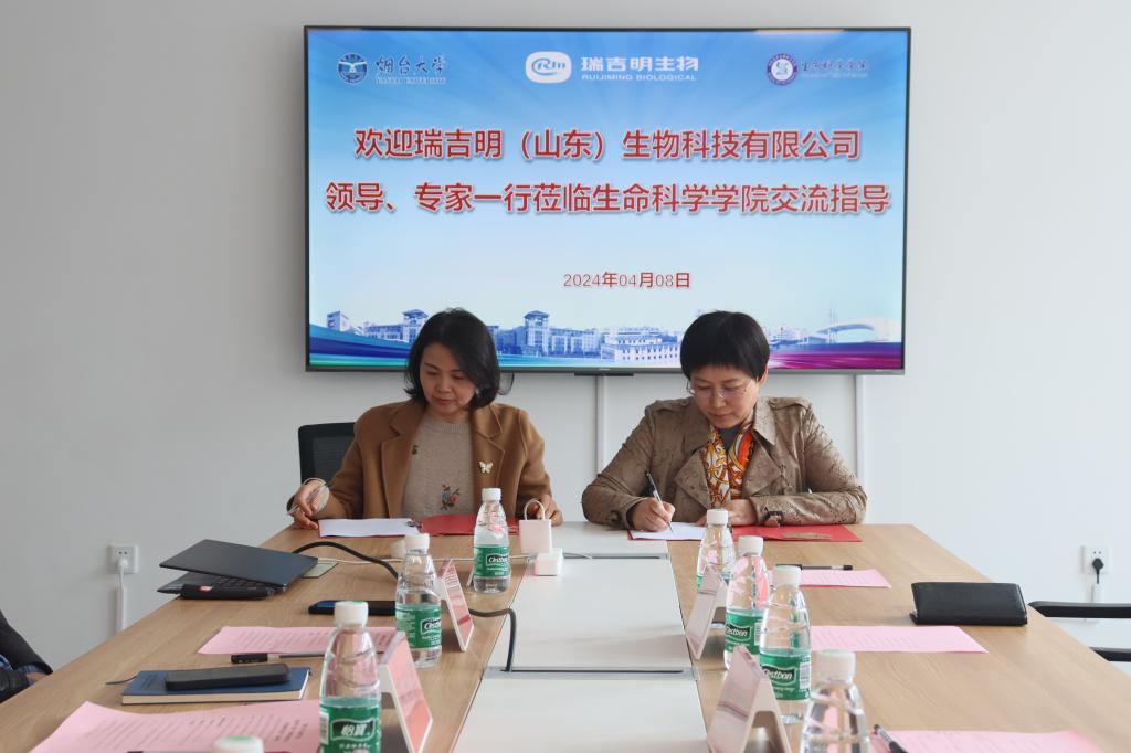 孙利芹与董书萍共同签署了战略合作协议,王绪敏教授与瑞吉明(山东)生物科技有限公司代表签署项目合作协议。双方在切实做好校企合作,服务企业与地方发展等方面达成合作意向,并一致表示要继续深化合作,不断拓宽合作渠道,服务区域地方经济社会发展。