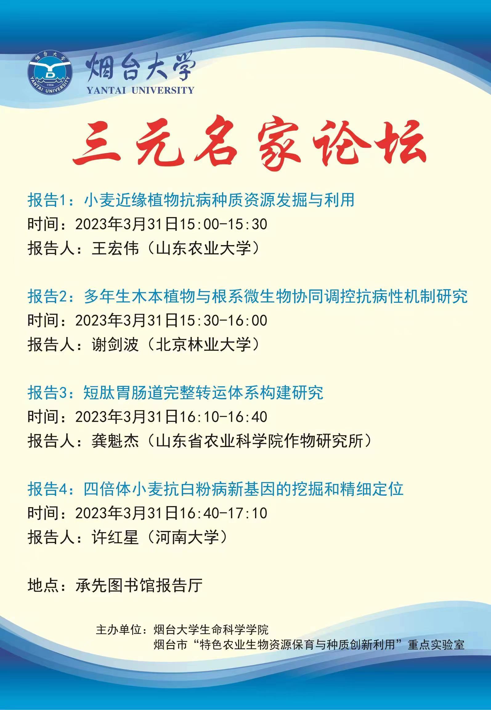 学术报告预告-三元名家论坛