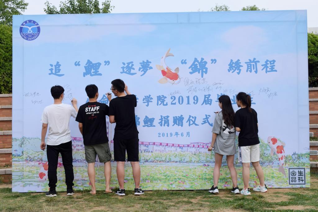 于湖心岛举行“追‘鲤’逐梦,‘锦’绣前程”锦鲤捐赠仪式。校党委常委副校长邓昌亮、王强,党委统战部部长、校友办主任李育华,教务处处长毕可志,后勤党委书记曲增欣,音乐舞蹈学院党总支书记王少波,校团委副书记张茜等出席仪式,院党总支书记毕朝辉以及毕业班的导师代表、毕业生代表全程参与。